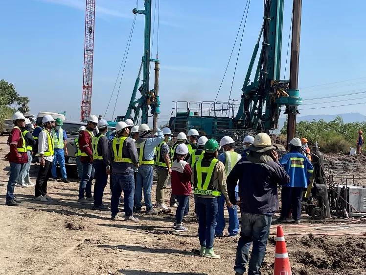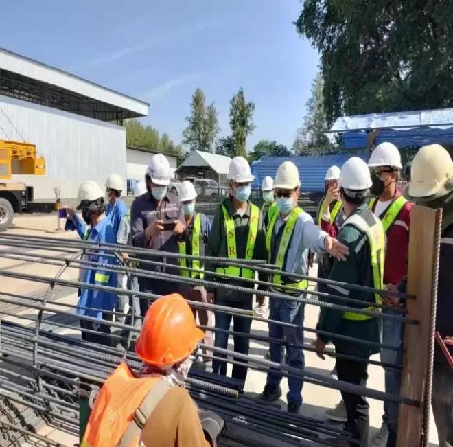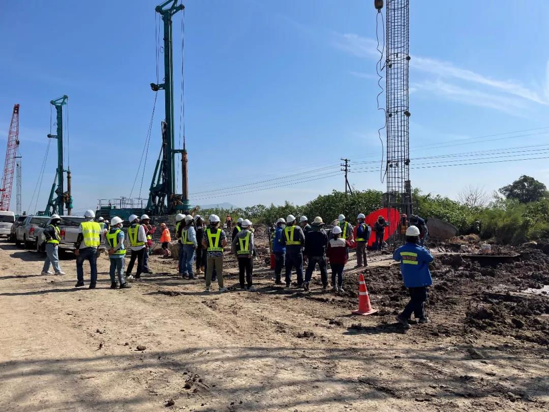 日前,由业主方、监理方率领的C4-7,C3-4,C3-5标段施工队伍前来项目部观摩学习,分别参观了钢筋笼加工、焊接及安装过程,灌注及成孔过程。参观队伍中更有泰国当地最大的建筑承包商,他们对施工团队及装备给予了充分肯定。