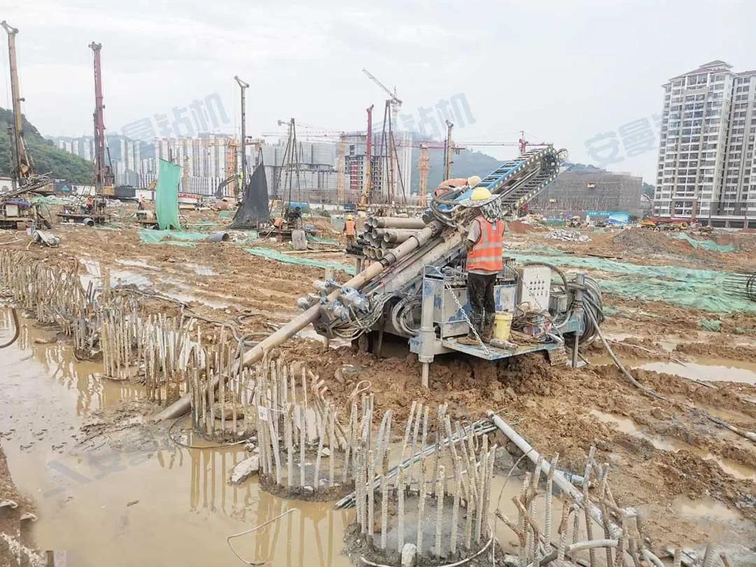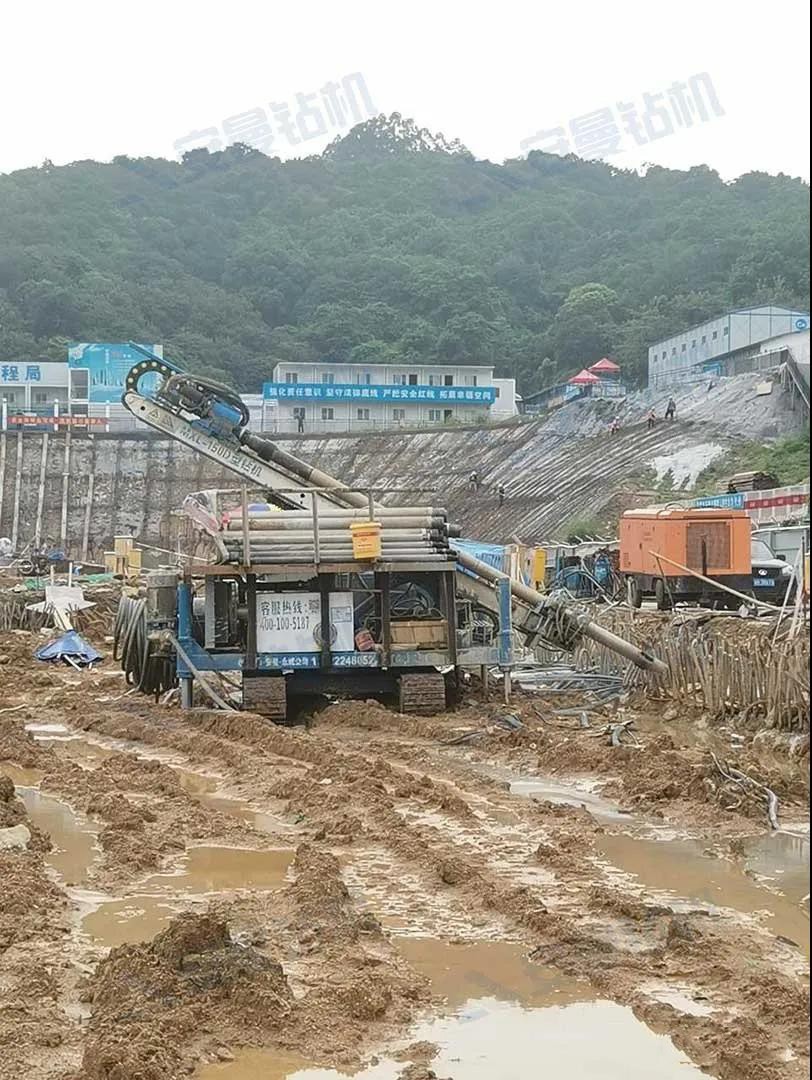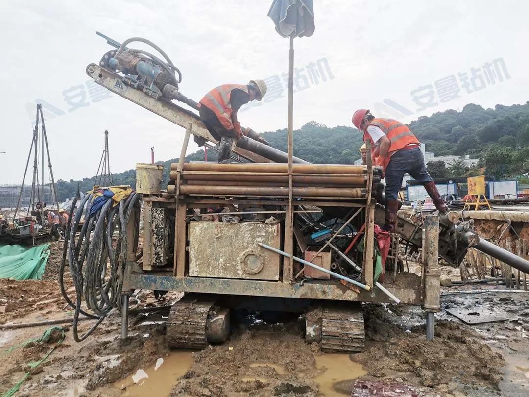 1、钻机移机到孔位,调整好角度,将支腿支撑到地面,确保钻进过程不发生位移;