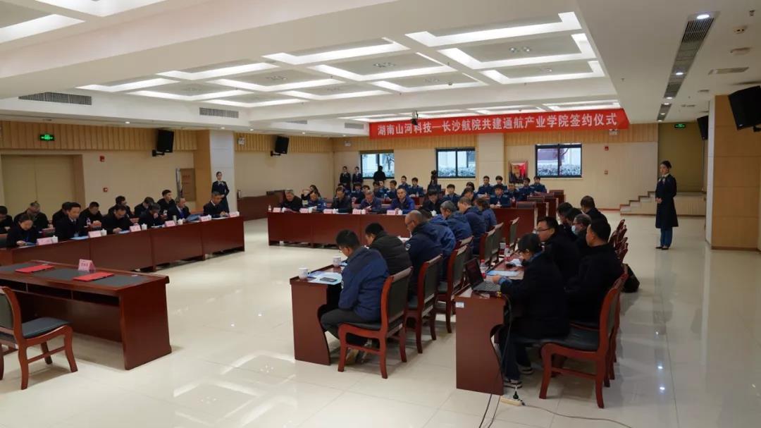12月26日,湖南山河科技股份有限公司与长沙航空职业技术学院就共建通航产业学院举行签约仪式,民航湖南安全监督管理局副局长何湘辉,湖南省教育厅、湖南省工信厅相关领导,山河智能董事长、首席专家何清华,长沙航空职业技术学院院长陈勇出席签约仪式。