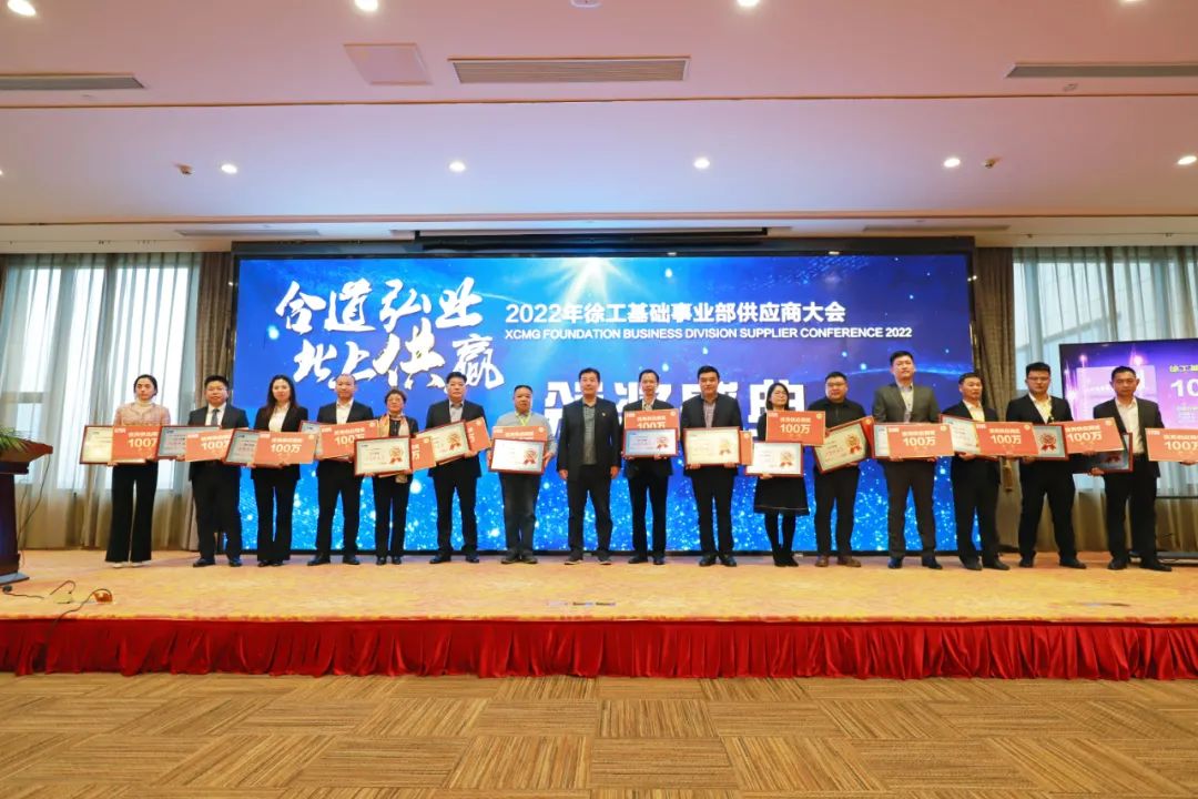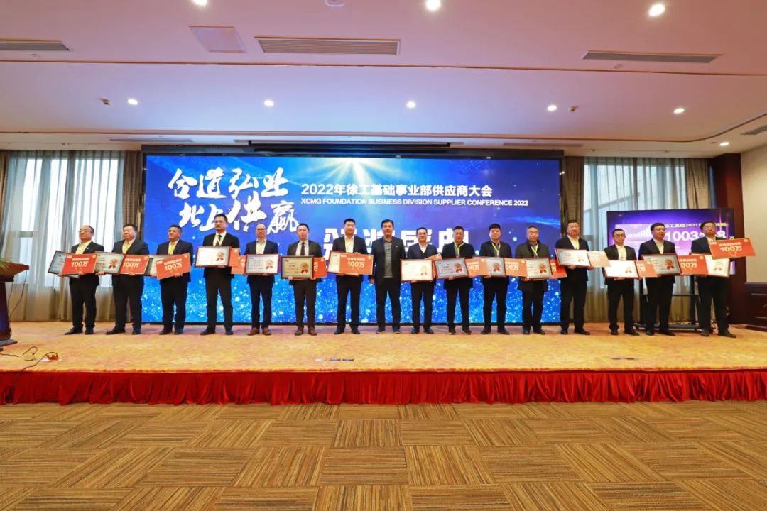 在达成百亿目标的喜悦和热烈氛围中,徐工基础表彰了表现突出的优秀供应商和最佳供应商,重点表彰了一批协同创新和质量提升优秀项目。