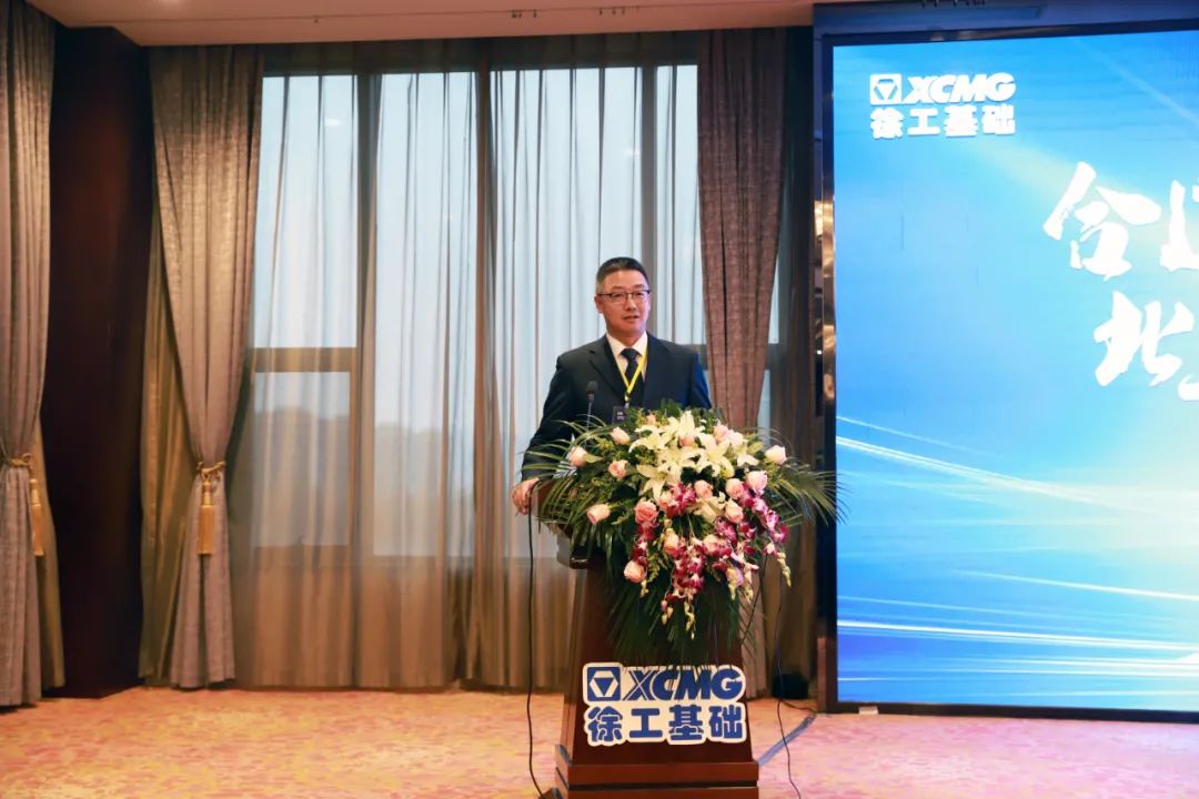 徐工基础副总经理张忠海致欢迎辞,向群策群力、为徐工基础高质量收官百亿做出贡献的供应商表示感谢与欢迎。