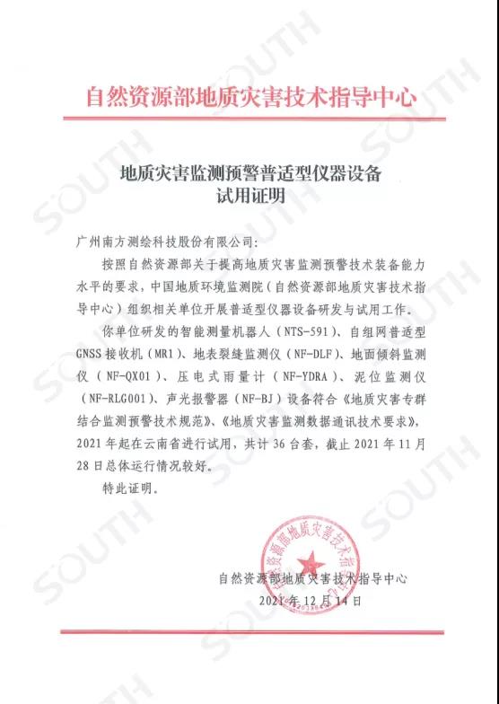 本次野外试用工作,中国地质环境监测院(自然资源部地质灾害技术指导中心)组织专家对全国范围内申请单位提交的申请试用材料进行严格评审,南方测绘以优良的自主研发能力、丰富的案例经验、强大的规模化生产能力,从众多申请试用单位中脱颖而出,入围本次试用示范。