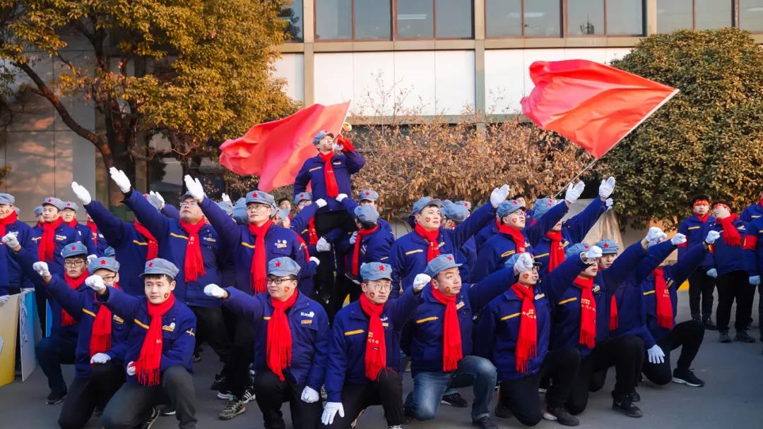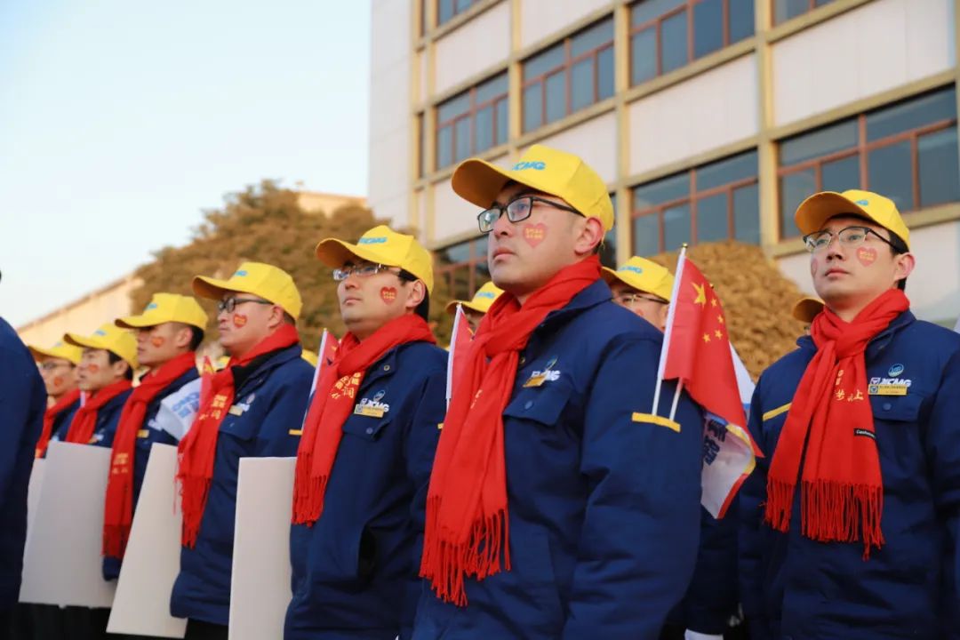 “跨越百亿,我是基础;阔步北上,我是先锋;制造强国,我是徐工!”百亿基础、战鼓催征的仪式彻底点燃了全员士气和斗志!全场员工精神抖擞、满怀激情,齐声合诵,场面恢弘!