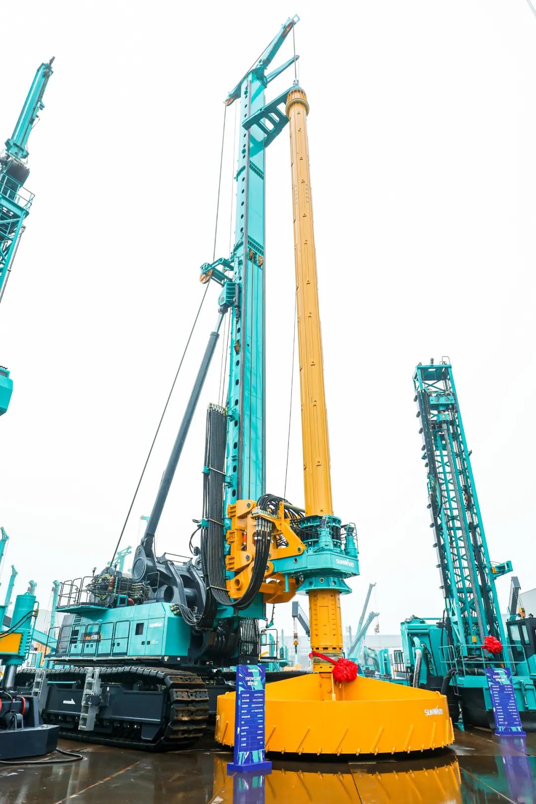 “这是我们的SWDM1280旋挖钻机,最大输出扭矩高达1280kN.m,全装备最大行走重量达到470吨,相当于近400辆小汽车,是目前全球最大吨位的旋挖钻机。”随着设备讲解人员的介绍,一台超级装备映入眼帘。