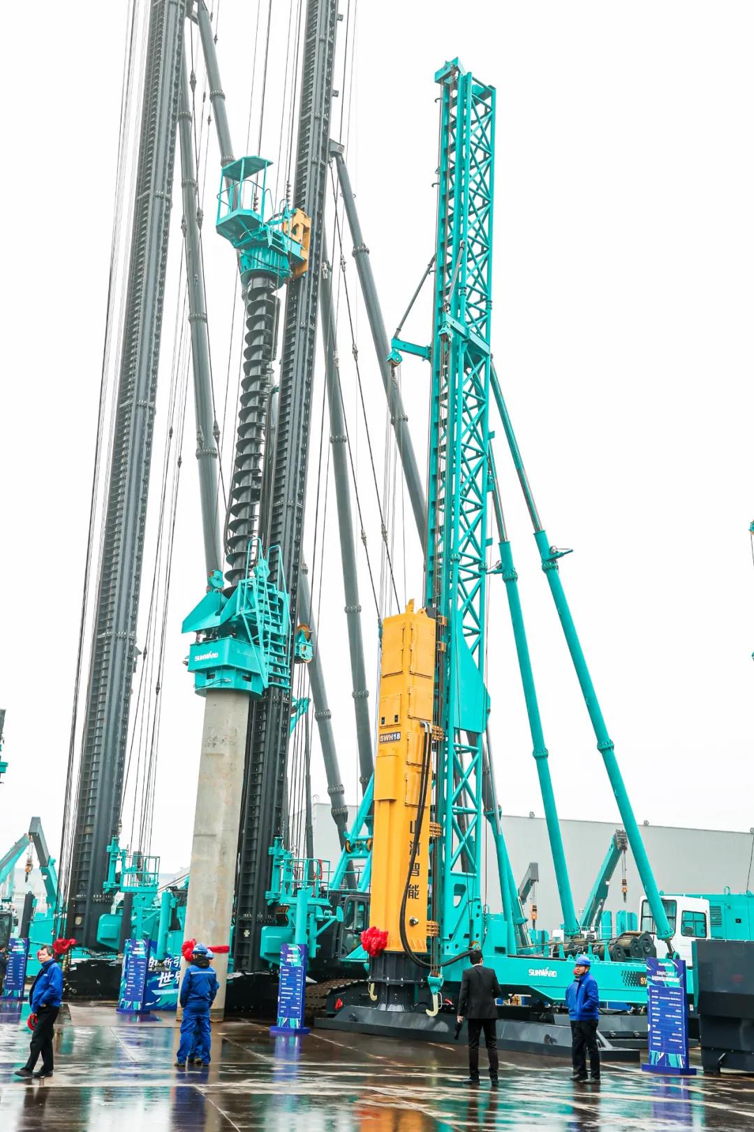 “那是我们的SWCH980-260M全液压履带桩架,立桅高度达62米,超出业内同类产品近7米,为世界最高。”在这款超级旋挖对面,一台超高桩架傲然耸立,它将应用到韩国的大型工程建设项目中。