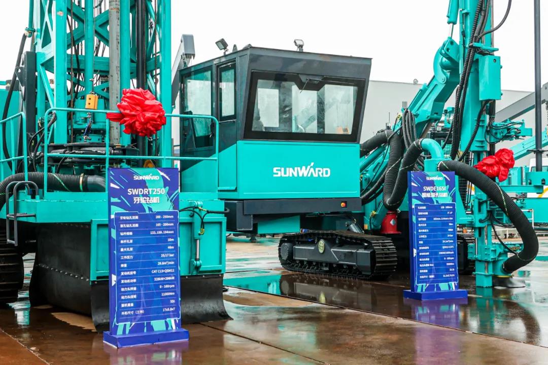 与此同时,山河智能自主研发的绿色智慧矿山成套装备产品——SWDE165I5G+智能钻机及“大孔径爆破孔钻凿之星”SWDRT250全液压牙轮钻机也精彩亮相此次发布会,各项先进技术再一次获得了到场嘉宾的肯定。