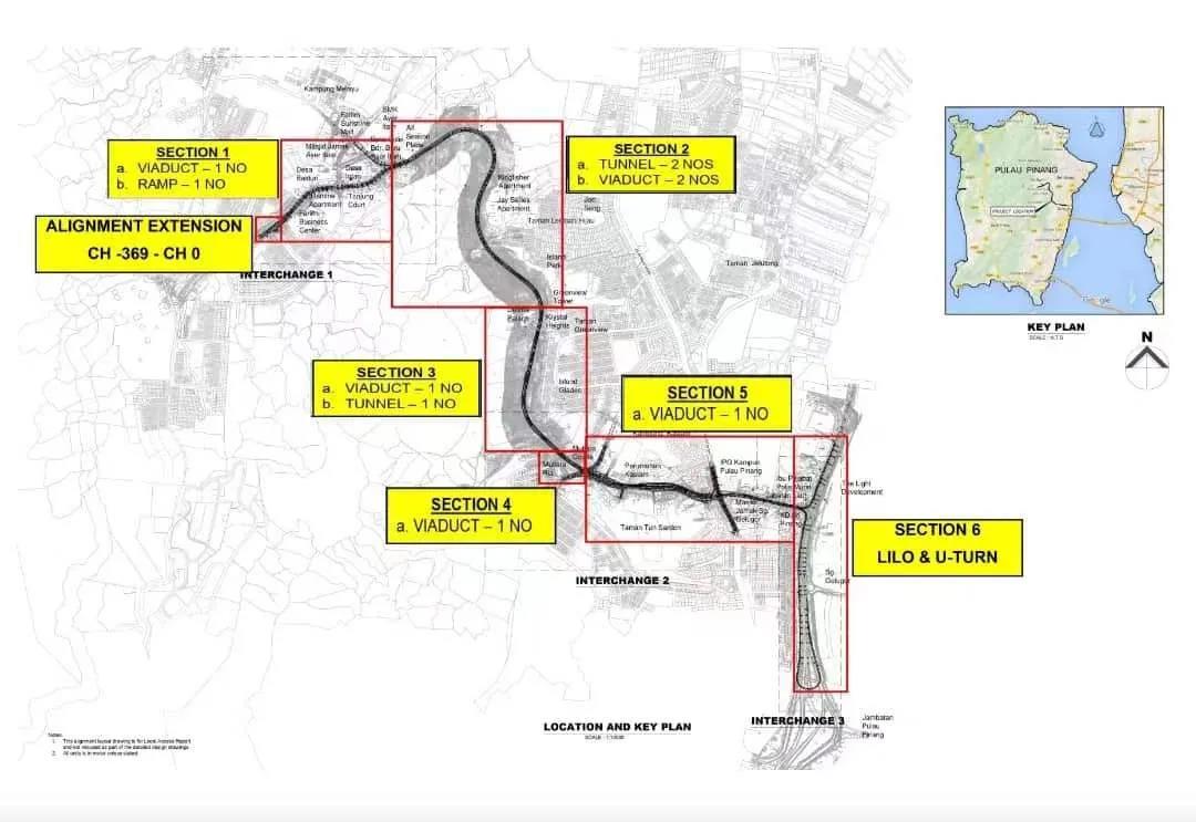 这条长达6公里的道路将由高架桥 (65%)、隧道 (20%) 和坡度部分 (15%) 组成,并将贯穿天德园大道、甘密山路、阿兹兰沙路及敦林苍佑大道。为了避免道路影响沿路的民宅及破坏原有的山体,承包商选择置入3个短程隧道。