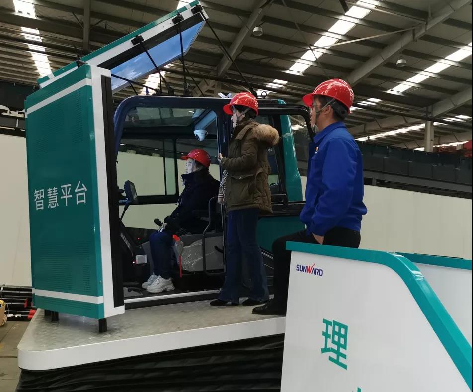随后,陈爱斌教授一行参观了挖掘机装配车间、盾构机、5G遥控仿真培训智慧平台、企业文化展厅。共性技术研究总院院长何松泉详细介绍了山河智能调试场装备、5G技术应用等情况,并邀请陈爱斌教授一行体验了山河智能全球首创的5G遥控仿真培训智慧平台。亲身体验仿真培训智慧平台操作后,陈爱斌教授表示,“5G遥控仿真培训智慧平台操作体验非常真实、临场感强,对培训新手操作员很有帮助”,同时他对产品的创新性也表示肯定。