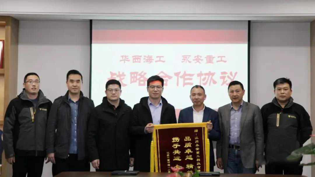 YC-130液压打桩锤配合华西5000平均1天1个机位的高效率施工,在风电抢装潮的背景下争分夺秒,赢得了华西海工领导们的认可。正是基于此,永安机械与华西海工于2021年11月23号签订战略合作协议,并授予永安机械锦旗,对品质及服务表示充分的肯定,希望双方携手共进,合作共赢。未来双方将继续强强联合,为海上风电贡献国产的力量。