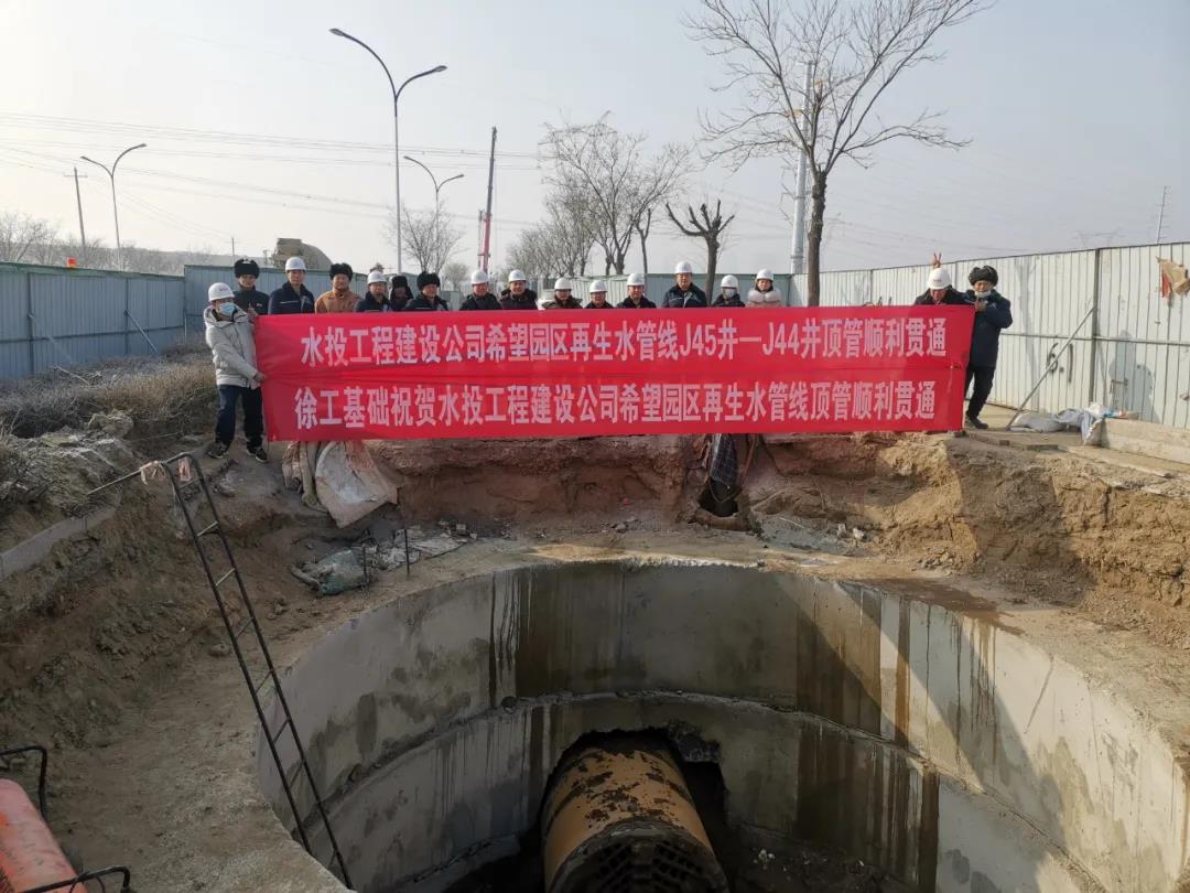 2022年1月9日,顶管机刀盘破壁而出,成功抵达接收井。由徐工XDN1200H全液压顶管机承顶的包头市希望园区再生水管线工程J45#--J44#井顺利贯通,该工程1标段取得阶段性胜利。
