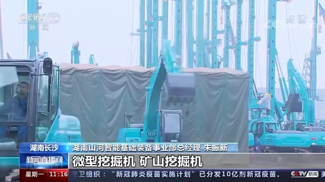 湖南山河智能基础装备事业部总经理 朱振新:现在市场瞬息万变,挑战很多,机遇很多。我们一直积极围绕“变”做文章,先后推出了5G遥控挖掘机、微型挖掘机、矿山挖掘机,其中挖掘机在国际市场的销售量同比增长翻番。