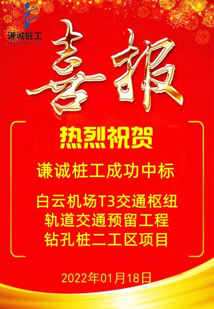 1月18日,在中铁一局白云机场T3交通枢纽轨道交通预留工程钻孔桩二工区项目的竞标中,公司凭借良好的市场信誉、成熟完善的技术方案以及合理的报价在多家竞争对手中脱颖而出,成功中标!