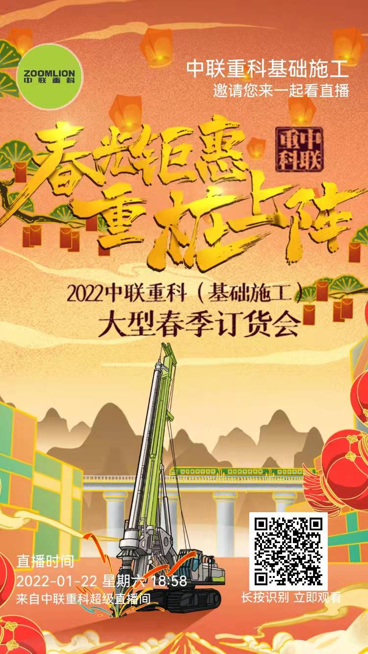 上海中联重科桩工机械有限公司为迎新春,过大年,将在1月22日晚,举办大型春季订货会,直播“嗨购”再升级!中联重科怀着对虎年的美好期许,这次与上汽大通汽车有限公司携手合作,相信“大将联合”一定会呈现不一样的视觉盛宴,为了回馈一直支持中联重科的老客户们,这次直播带来了重磅优惠政策,只有你想不到,没有我们做不到!