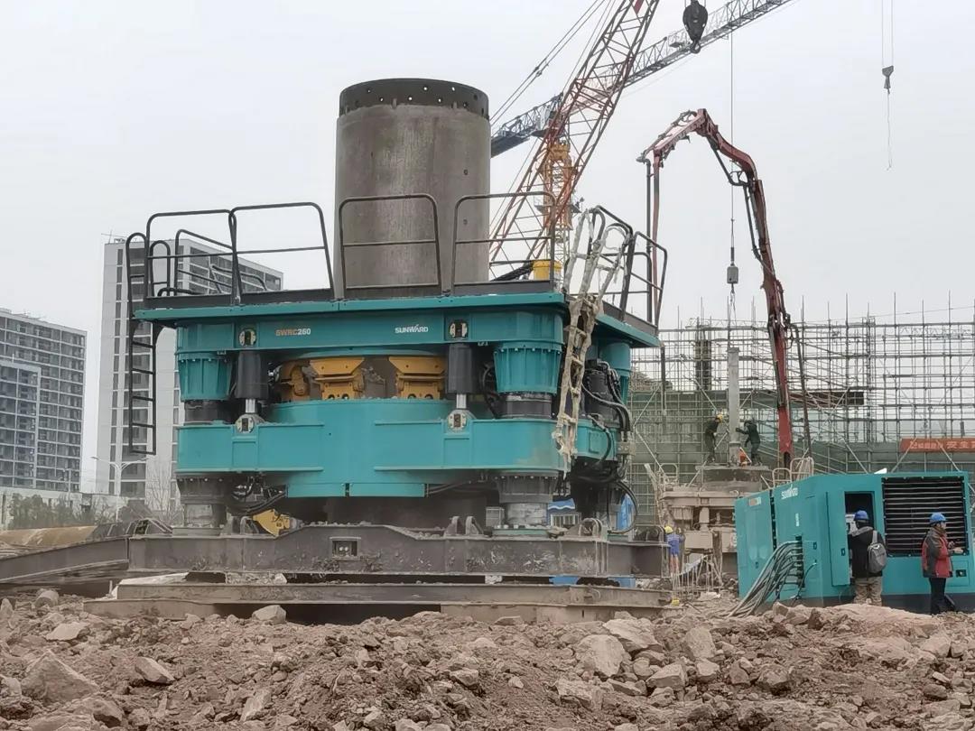 △SWRC260全回转全套管钻机配合SWDM480旋挖钻机施工。