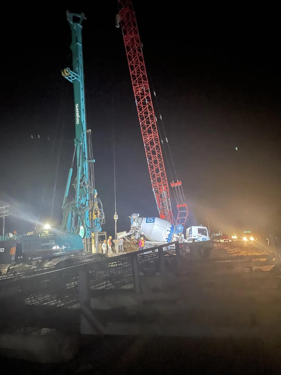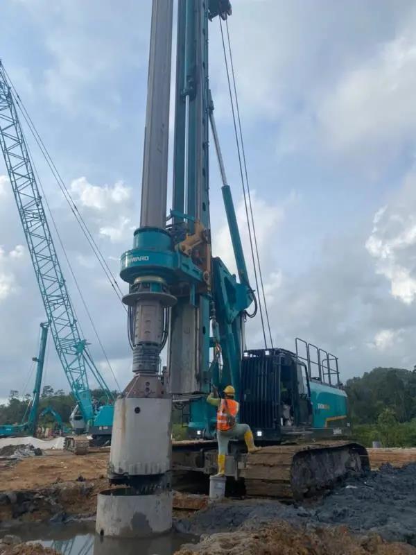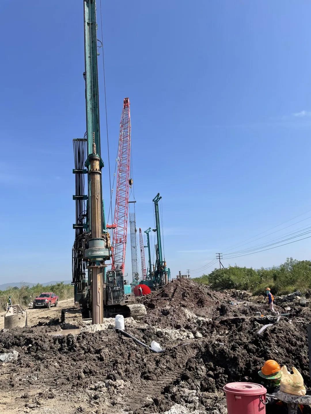 该项目自2021年8月份开工以来,已累计完成495根桩、12451延米,实现产值2429万泰铢,折合人民币467万元。目前,3台山河旋挖钻机每天产量维持在8根桩,施工效率领先于其他各标段,得到业主及总包方一致好评。该项目的实施,奠定了山沃国际泰国公司在当地桩基市场的基础,为其在泰国市场长期持续发展做出重要贡献!