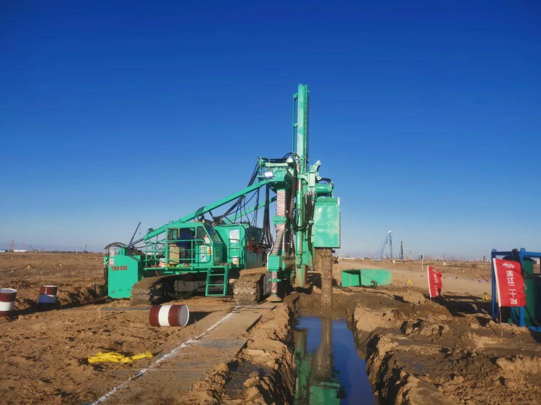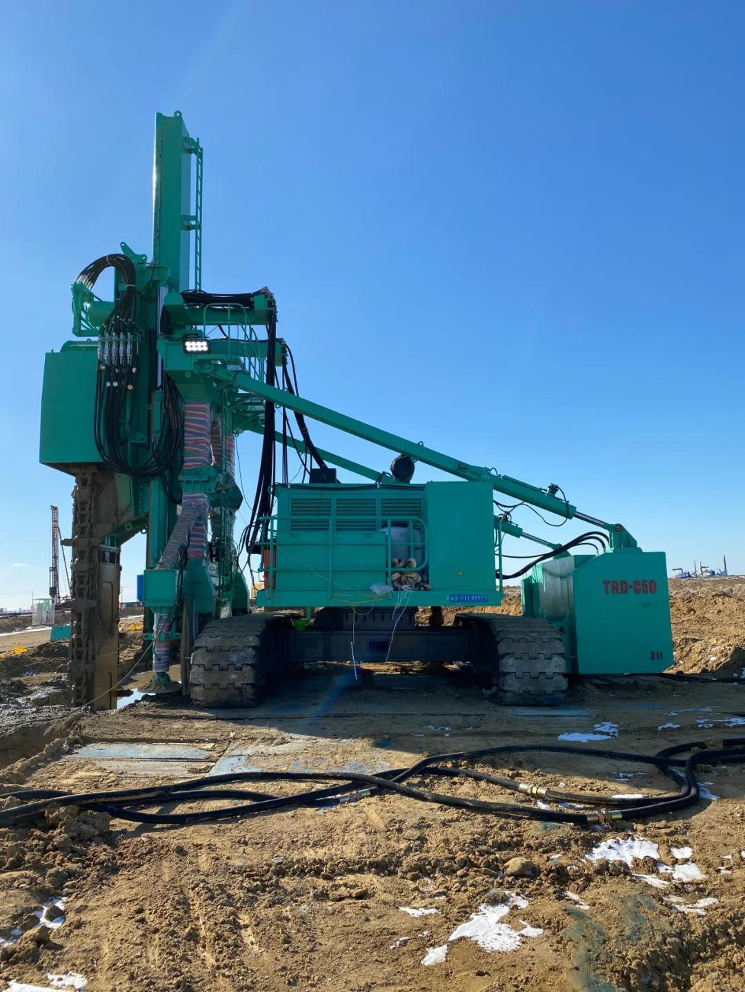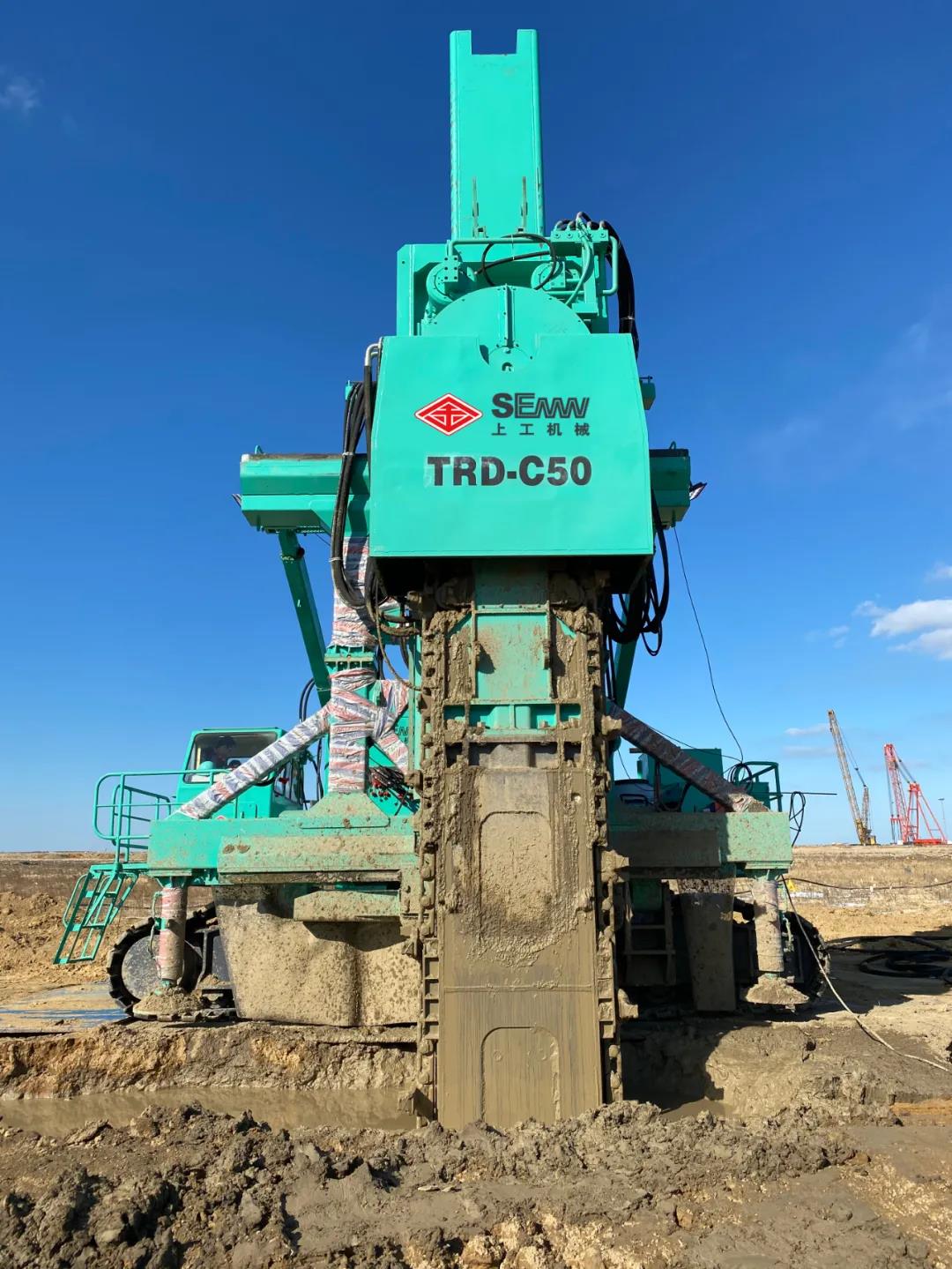 2022新年伊始,作为国内TRD行业的领跑者,上工机械全新推出TRD-C50型工法机精彩亮相,进驻华北地区某重点工程。全新设计的柴油机动力履带式底盘,最深施工深度50.5m,成墙厚度550-900mm,更强的机动性能,更低的施工高度,更好的施工便捷性,非常适用于50m以内深度项目施工。TRD-C50在本次项目施工表现优异,各项性能指标达到设计要求,得到客户的高度认可。