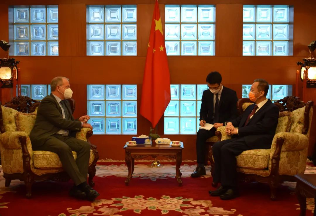 2月22日,中国驻瑞典大使馆崔爱民大使会见沃尔沃集团总裁兼首席执行官龙世德,就沃尔沃集团在华合作发展情况交换看法。沃尔沃集团副首席执行官顾润德,使馆经商参赞韩晓东等参加。
