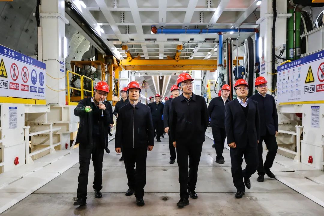 刘为民一行来到项目安全质量监控中心,对中铁十四局大盾构品牌建设发展、技术研发及平台建设、大数据信息化系统建设、工程承揽等情况进行了全面了解。随后,深入盾构掘进掌子面,详细了解盾构机掘进情况、工程进度、质量管控措施等情况。