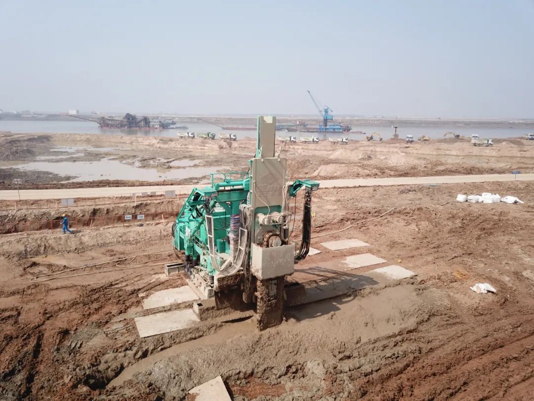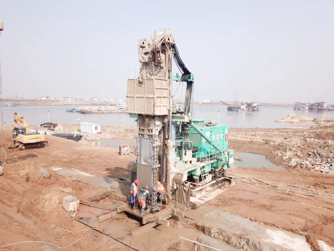近阶段,上工机械TRD工法机助力任务是多段止水帷幕连续墙作业,该项目TRD施工总方量超100万方,总长度约30公里,项目所在地新建区境内河港纵横、湖泊密布,以赣江、锦江、修河支流蚂蚁河为主体,地质层为沙层和鹅卵石,在此复杂地况的江边施工,对施工技术与设备有着极高的要求,绝不是一件容易的事。