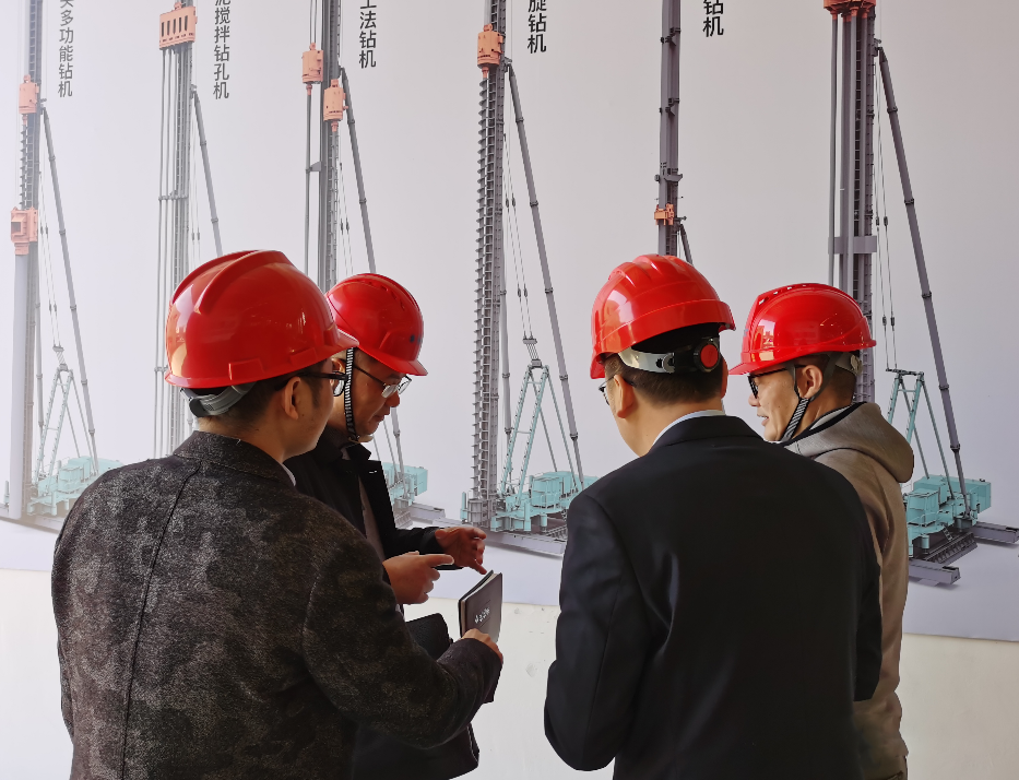 在走访过程中曹高峻总经理向莅临的来宾讲述了振中近几年在“国家双碳”大战略背景之下所做的企业经营策略和产品布局以及企业高强度的研发投入概况。曹高峻总经理说:近年来公司高度重视研发人才的引进和高效、节能、环保新产品的研发与制造,如公司“多功能根植桩钻机”、“五轴钻掘双喷搅拌钻机”、“双轮铣削搅拌钻机”等新产品陆续推出,并以绿色环保、高经济效益的特点受到市场热捧。
