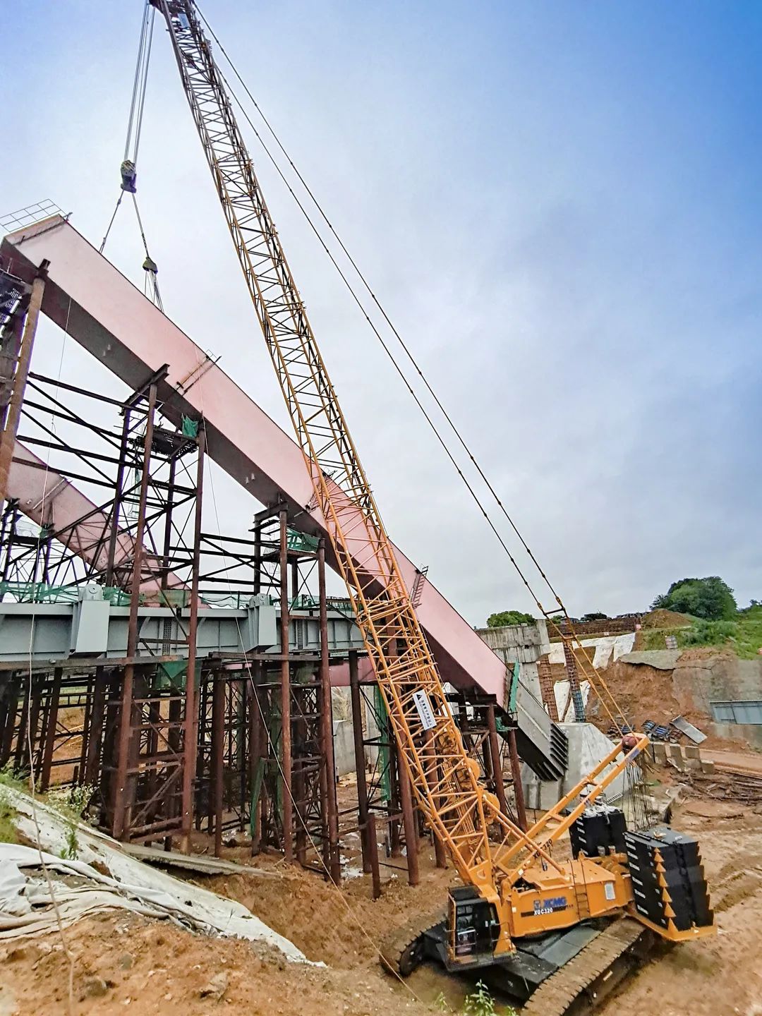 最终,比原计划提前11天,徐工XGC320履带起重机顺利助力大桥拱肋合龙。