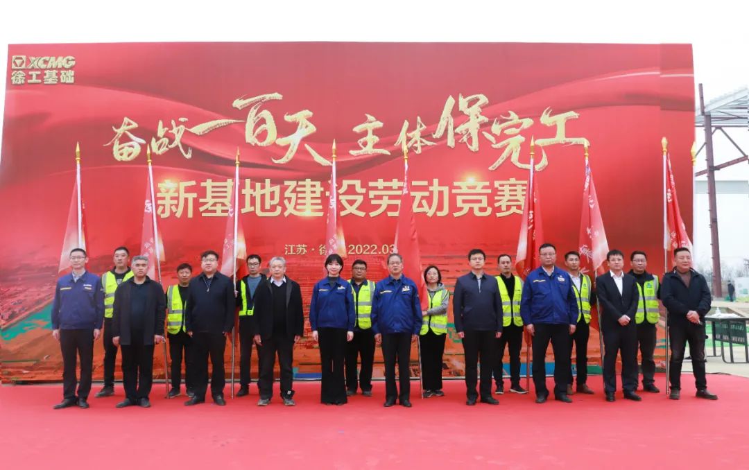3月16日,徐工基础在贾汪新基地召开“奋战一百天,主体保完工”劳动竞赛启动大会。贾汪区区委常委、副区长孟磊、青山泉镇镇长贺广喜,徐工基础领导、施工建设各条战线的领导、骨干,齐聚现场,共同开启新一轮大干热潮,确保6月底,土建主体完工,设备进场安装,涂装发运投入使用,市政配套全面贯通。