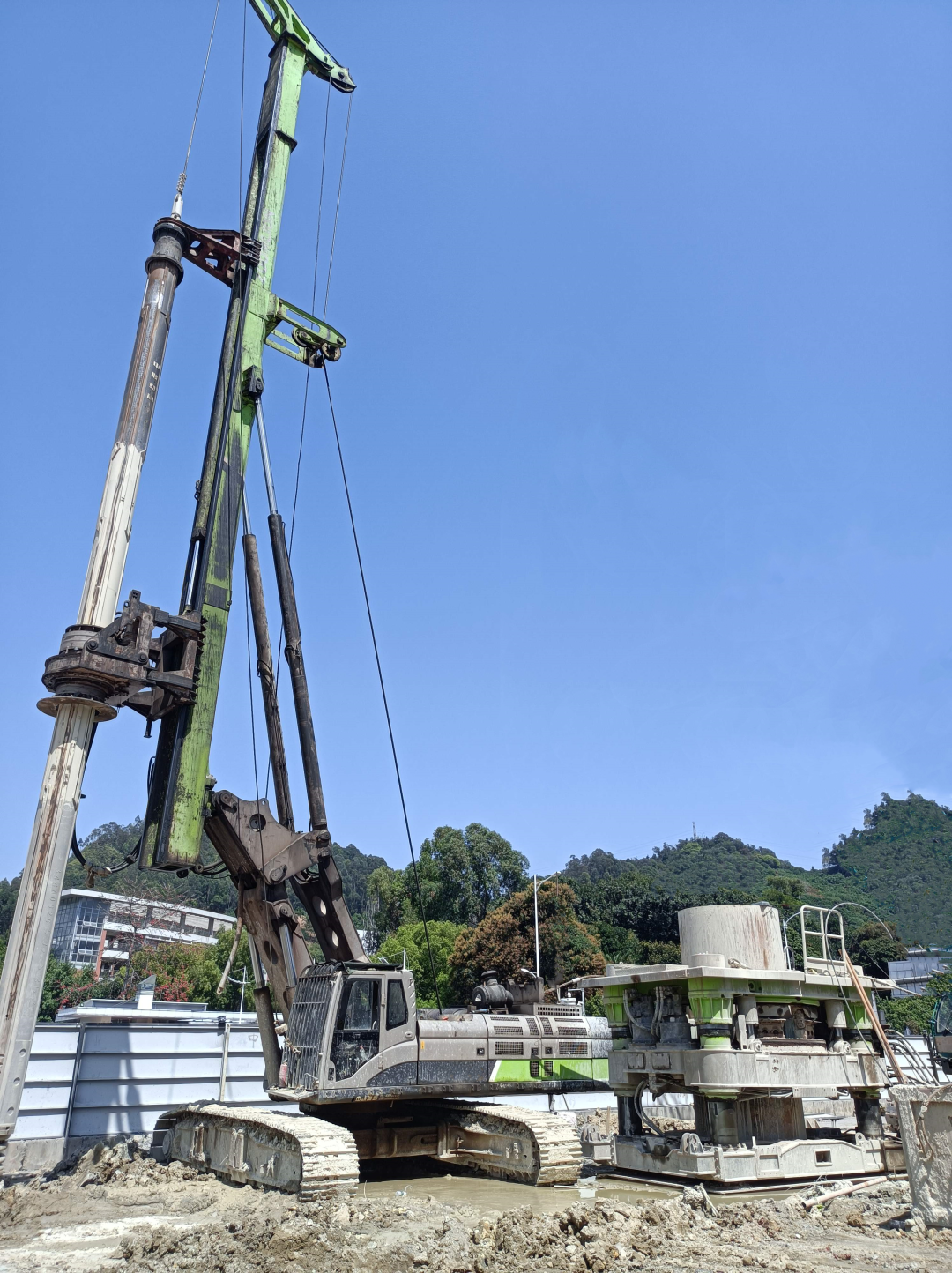 他还介绍道:“环市立交涉及施工内容多,需克服立交桥梁基础紧邻营运地铁、临近南沙小学校、交通繁忙、管线复杂等诸多难题,并且该交叉口下地铁四号线南延线塘坑地铁站已开通运营。为确保地铁安全和降低对周边的影响,我们多次研究施工方案,最终确定采用中联重科全回转钻机ZRT210H和旋挖钻机ZR420相互配合,进行全套管全回转钻机工艺施工。”