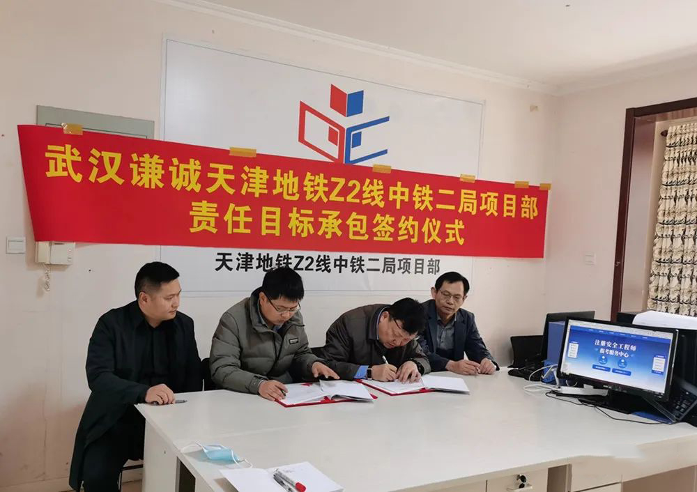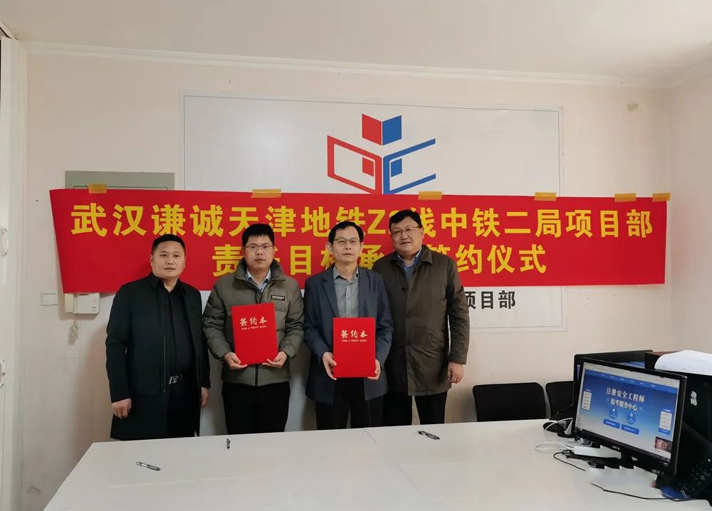 3月17日,为强化管理,降本增效,提高项目管理的自主性和积极性,谦诚桩工副总经理兼岩土工程事业部总经理周强、岩土工程事业部副总经理兼华中工程指挥部指挥长王大勇、北京工程指挥部指挥长翟又然等一行来到天津,与天津地铁Z2线项目签订责任目标承包协议。在签约仪式上,周强代表公司,王大勇代表事业部,翟又然代表指挥部,项目常务副经理文莘代表项目团队,分别在责任目标承包协议上签字,公司、指挥部代表和天津项目骨干员工共同见证签约过程。