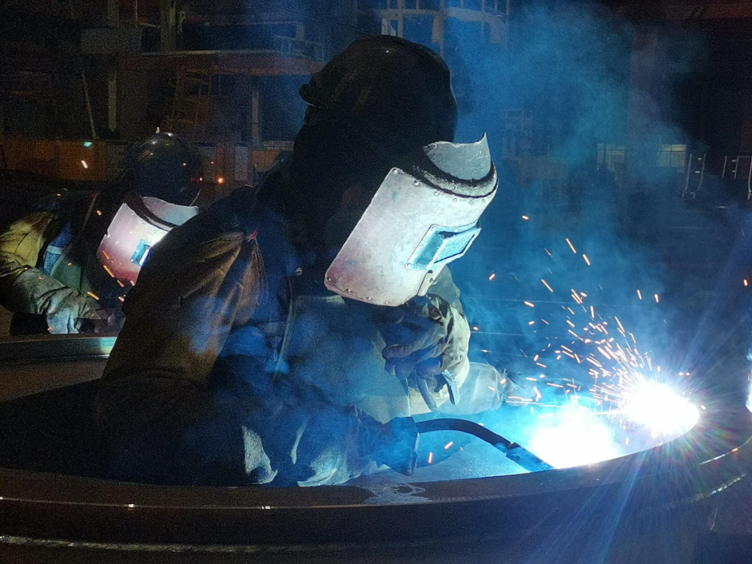 冒着散发的焊烟,迎着飞溅的火花,拿着焊枪,走进平台,迎着灼热就是焊,这是山河智能基础装备事业部制造公司陈新元十几年如一日的工作写照。