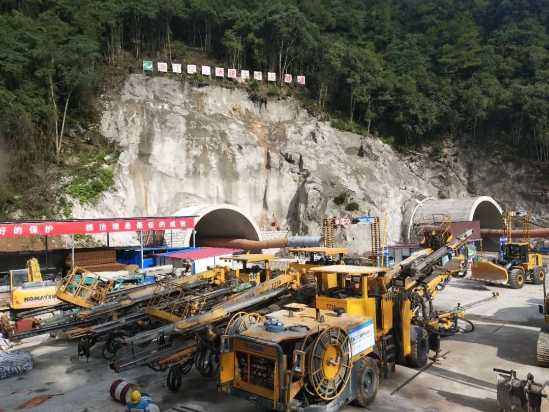徐工三臂凿岩台车承建文泰高速大岭尖隧道,在复杂的地质条件下高质量、高精度完成工程施工。