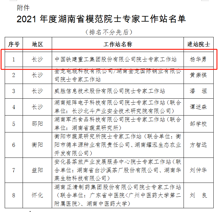 今天,湖南省科学技术协会公布了2021年度湖南省模范院士专家工作站名单,铁建重工成功上榜。