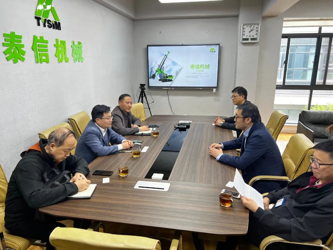来访领导一行在泰信机械董事长辛鹏的陪同下,共同参观泰信制造车间。泰信机械作为第三批国家级专精特新“小巨人”企业,是专注于中小型桩工机械研发和制造的专业桩工企业。辛鹏董事长为来访领导介绍了泰信的企业发展史、组织架构、研发重点及中小旋挖钻机的前景应用,并着重介绍了近几年泰信在“小型化、定制化、多面化、国际化”这四个方面建立的核心优势。目前泰信机械已获核心专利50余项,产品全系列通过欧盟CE认证,产品包括整体运输式小型旋挖钻机、卡特底盘系列中型旋挖钻机、模块式旋挖钻机、全液压截桩机等多种桩工机械型号。泰信品牌的KR系列中小型旋挖钻机和KP系列全液压截桩机已成为国内领先的专业桩工品牌,其中多项定制型新产品的开发填补了行业空白。