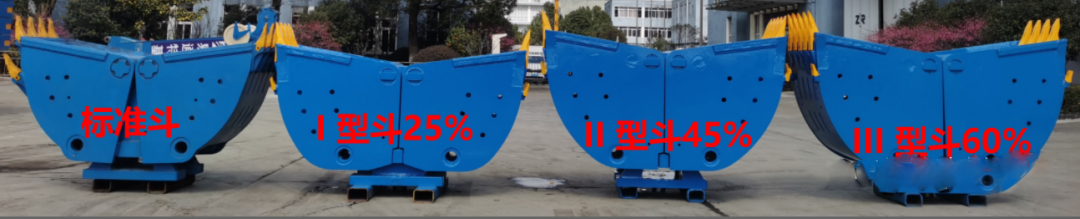 超级容量斗目前有 I、II、III 三种斗头结构,斗头的容量分别增加 25%、45%、60%, 适配于各品牌型号的液压抓斗!