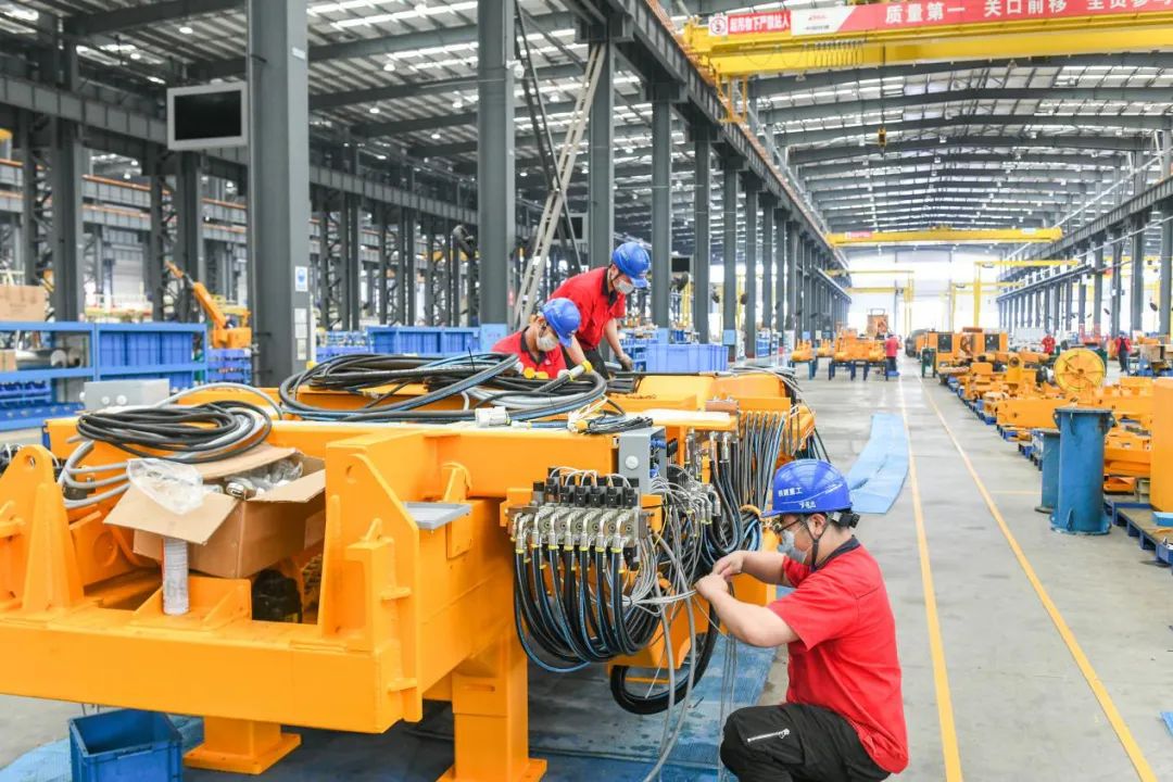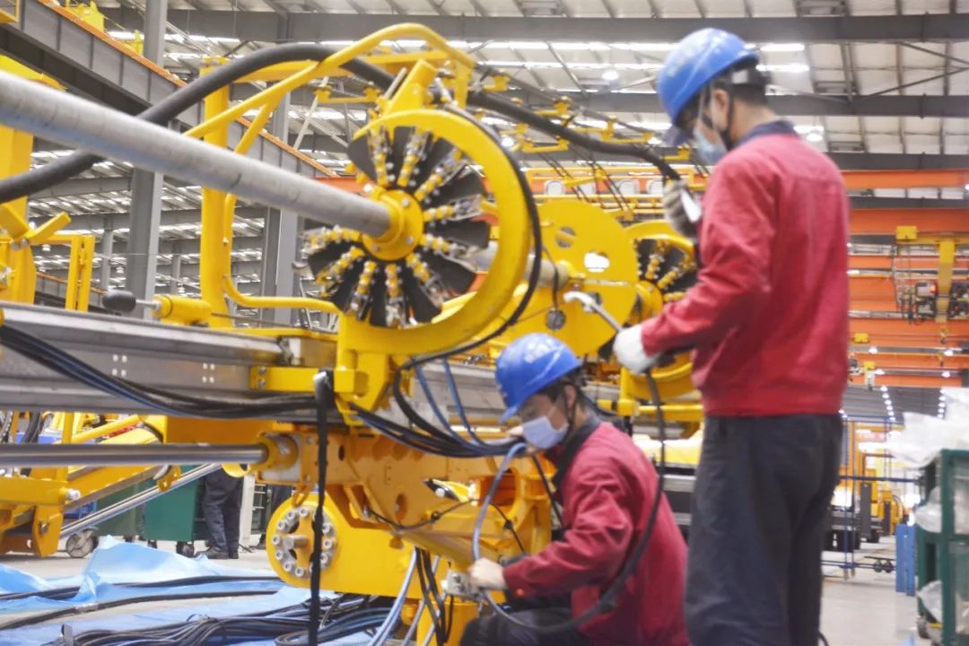 铁建重工特种装备车间里,工人们正在进行高原铁路项目全电脑三臂凿岩台车、锚杆台车、湿喷机、拱架台车、多功能钻机等产品的生产工作。为如期完成生产装配任务,管理人员把控关键环节,生产人员克服工期困难,开启双班模式,力保产品供应。