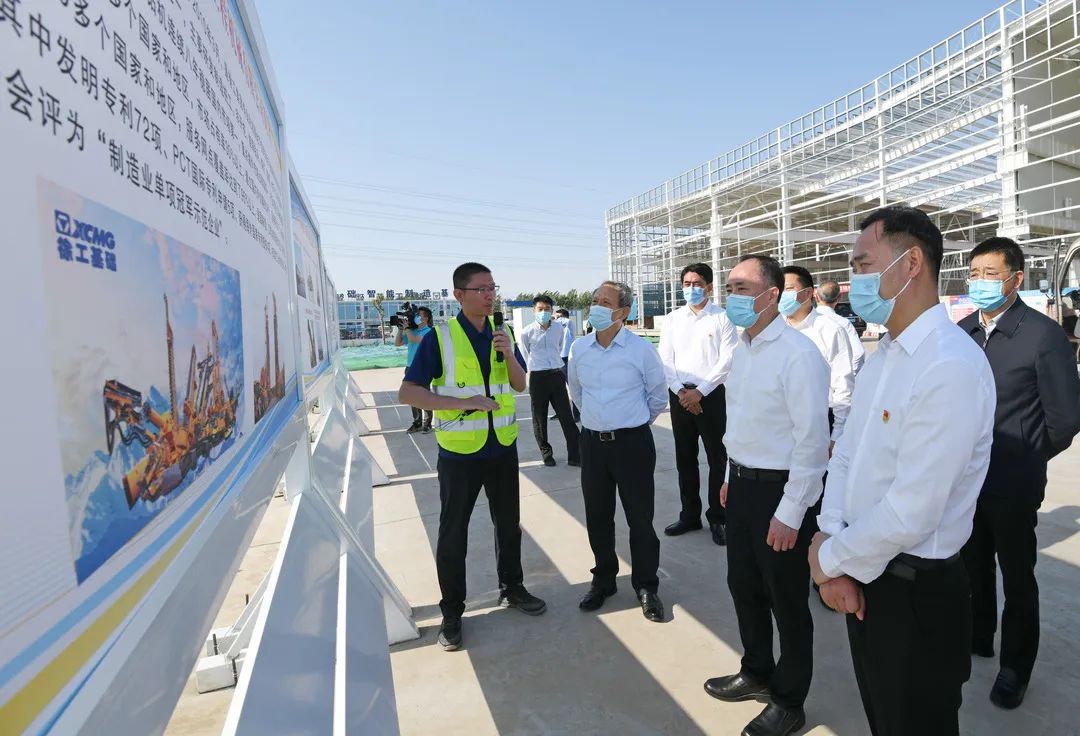 在徐工基础工程机械智能制造基地,宋乐伟仔细询问企业发展情况,不时与徐工基础项目负责人进行交流,实地了解项目总体规划及建设进度,详细了解了基础工程机械产品应用性能,新基地项目的智能化、绿色化建设情况等,就项目推进中遇到的具体问题现场协调解决。