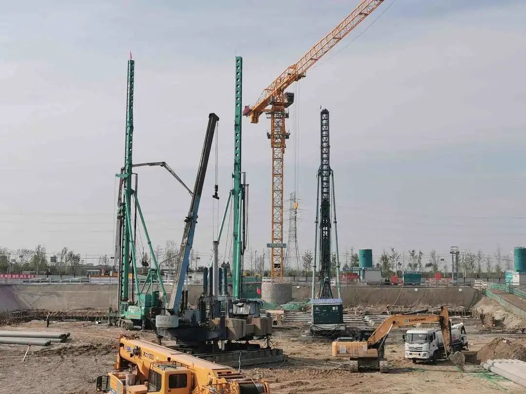 ■现场的旋挖钻机一天仅能完成3~4根灌注桩施工;