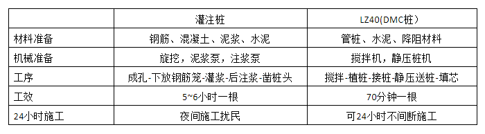 ■它与灌注桩相比,施工效率提高50%以上;高强预制芯桩,质量可控;水泥浆与土体原位搅拌现场无泥浆排放,无振动、无污染,绿色环保。