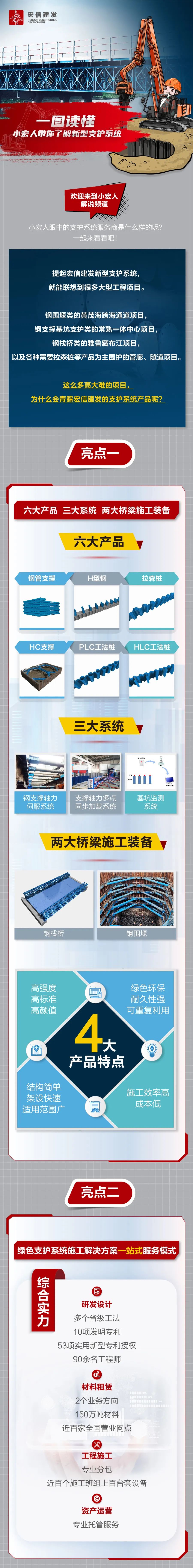 宏信建发拥有新型支护系统、新型模架系统、高空作业平台及其他设备,如道路设备、电力设备及叉车,资产总额超百亿元。面向市政建设、房屋建设、交通建设、船舶海工、工业制造、绿色能源、仓储物流、文化艺术、商业娱乐等建设领域,为客户提供设备运营综合服务。