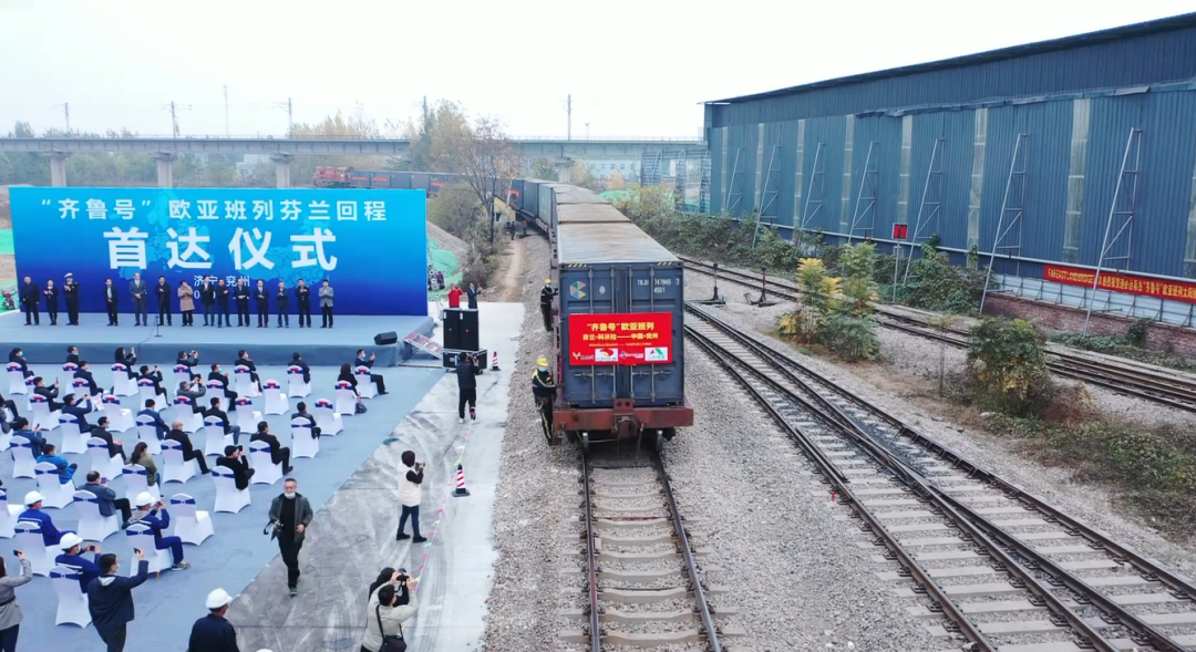 2020年11月14日,首趟“中欧班列”抵达中铁十四局兖州国际陆港物流园