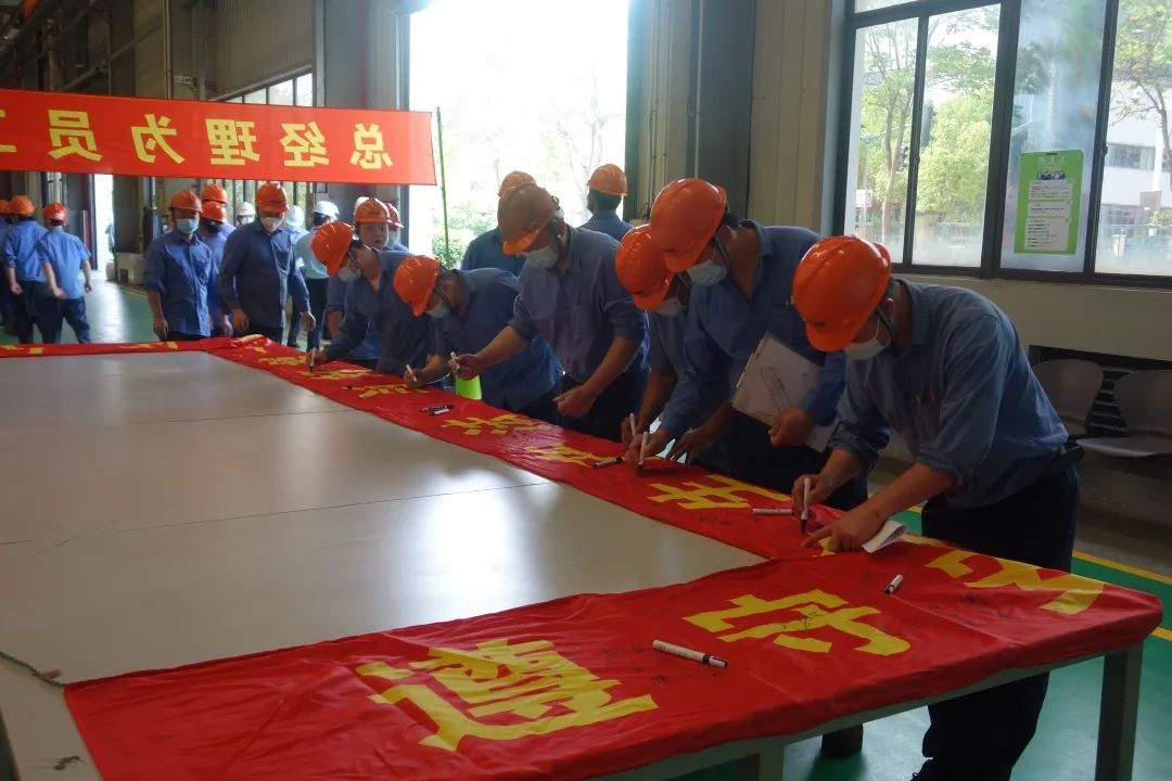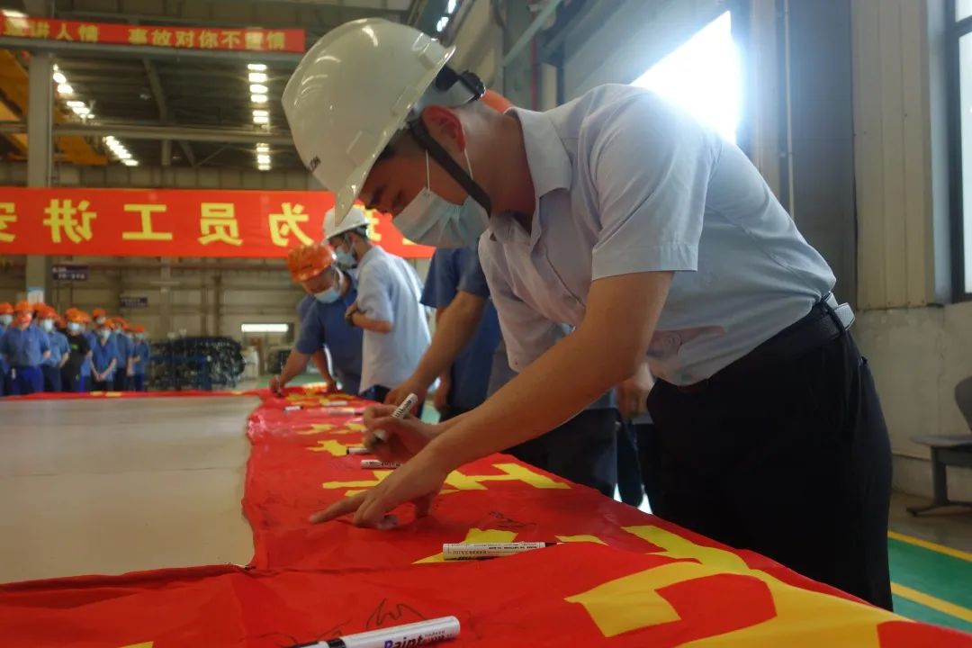 最后,全体参会员工在印有“遵守安全生产法 当好第一责任人”标语的“安全生产月”横幅上签字,庄严做出安全生产承诺。