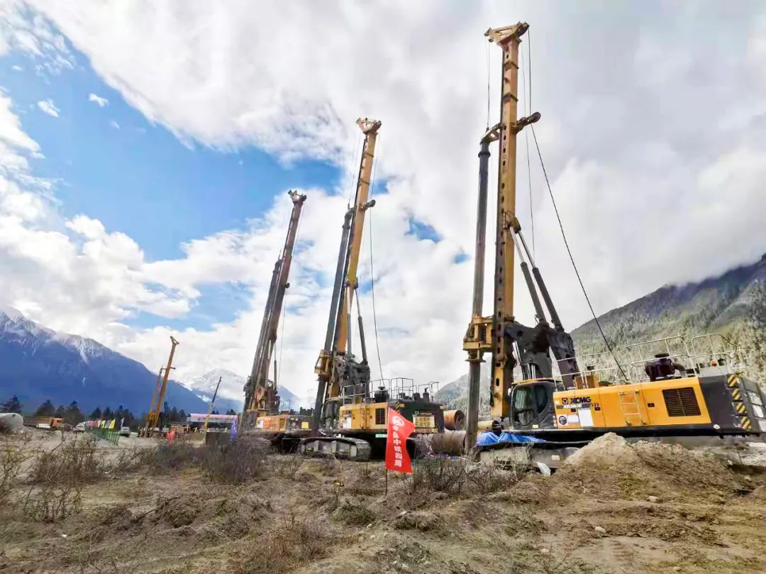 川藏铁路波密段,由徐工XR280E、XR360共4台组成的旋挖钻群团进驻波堆藏布特大桥。施工地处海拔3000m左右,桥长13.9km,桥桩87000m,桩深在30m左右,全鹅卵石地层。高寒、高海拔,徐工旋挖钻机热力不减,发挥出耐寒、破硬岩的技术优势,助力波堆藏布特大桥桩基础施工稳步推进!