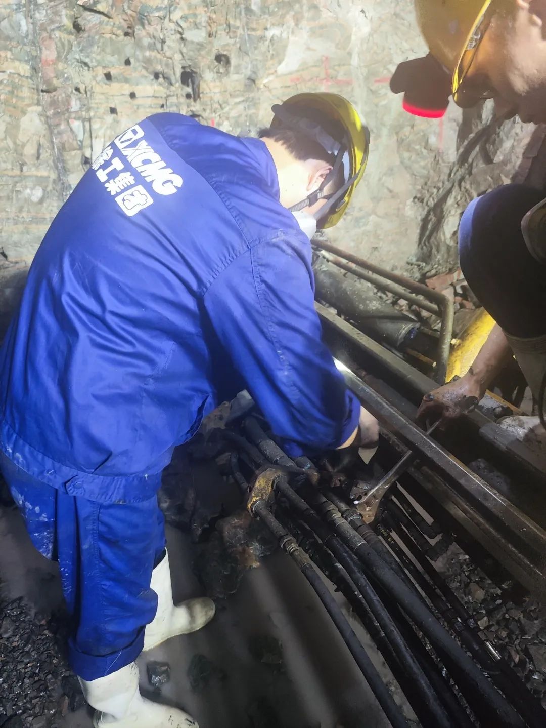 去年11月的一个晚上,吴佳承接到安徽省某项目部电话:正在施工的徐工矿用单臂凿岩台车出现故障,无法正常工作。接到报修后他第一时间赶到现场。