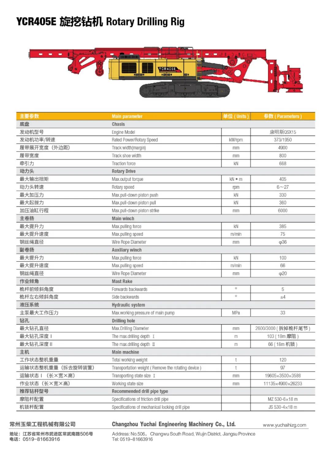 常州玉柴YCR280D、YCR405E旋挖钻机配置优越: