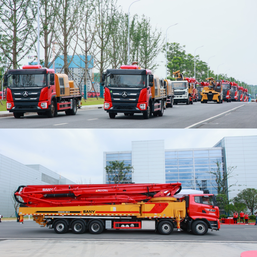 随后的是车载泵、湿喷机以及最受客户喜爱的C10系列、S系列泵车,它们贡献了诸多世界纪录。