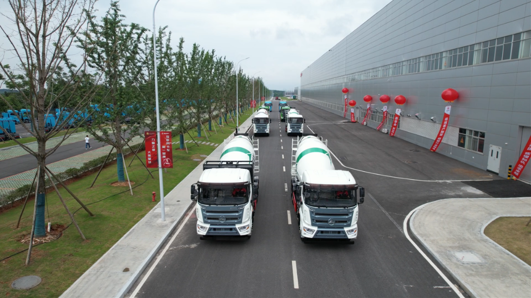 随着31声礼炮的轰鸣,55名工程师作为“头阵”,开启了工程机械行业的首次“大阅兵”。紧随其后的是混凝土机械方阵与电动产品方阵,31台搅拌车、车载泵、湿喷机、泵车以及电动化产品组成设备长龙,霸气地盘踞在智联重卡产业园的主干道。