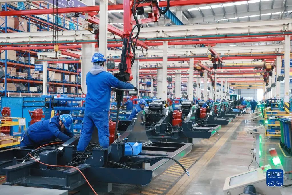 布线布管,吊装发动机,安装散热器……位于长沙市的山河智能装备股份有限公司车间里,一片忙碌景象。