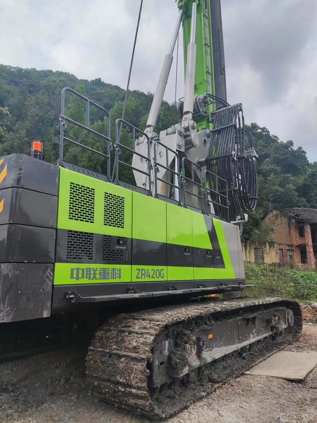 该工程的主要难点在于在需要持续砍硬岩作业,对于设备的持续钻进能力与稳定性有较高的要求。中联重科ZR420G,其扭矩为430kN.m,搭载新一代大功率发动机,动力强、排放少、油耗低, 搭配大排量动力头马达、大流量泵阀,性能澎湃,动力强劲,可以长时间地砍岩作业。如果设备晃动幅度大,将不止影响钻进能力,也会影响设备的使用寿命与故障率。本次选用的ZR420G采用了大截面桅杆、高强度双动臂、加强型转台, 超大直径重型回转支承,具备低重心设计,使得施工晃动小、 稳定性高,完美契合本项目的施工需求。(以下视频为四川马尔康施工案例)。