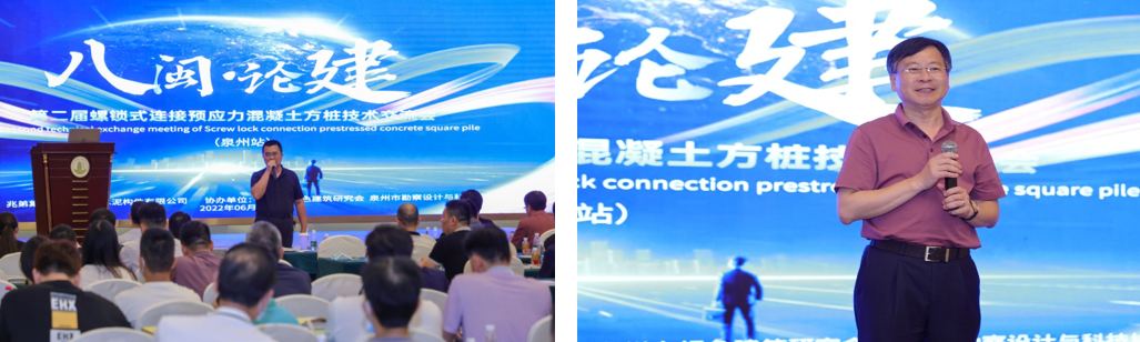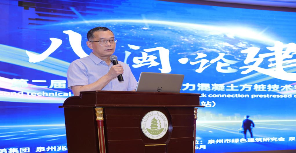 6月23日下午,泉州市迎宾馆开元厅人头攒动,一场由泉州市绿色建筑研究会、兆弟集团、泉州市勘察设计与科技协会共同联办的“八闽论建”泉州技术交流会暨第二届螺锁式连接预应力混凝土方桩技术交流会在这里隆重举行。会议由泉州市绿色建筑研究会林文良会长主持,特邀主管行政单位、行业老专家、总工、学者、建设单位领导等170余名代表参加大会。