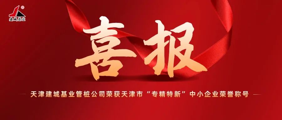 近日,天津建城基业管桩公司获评天津市“专精特新”中小企业荣誉称号。