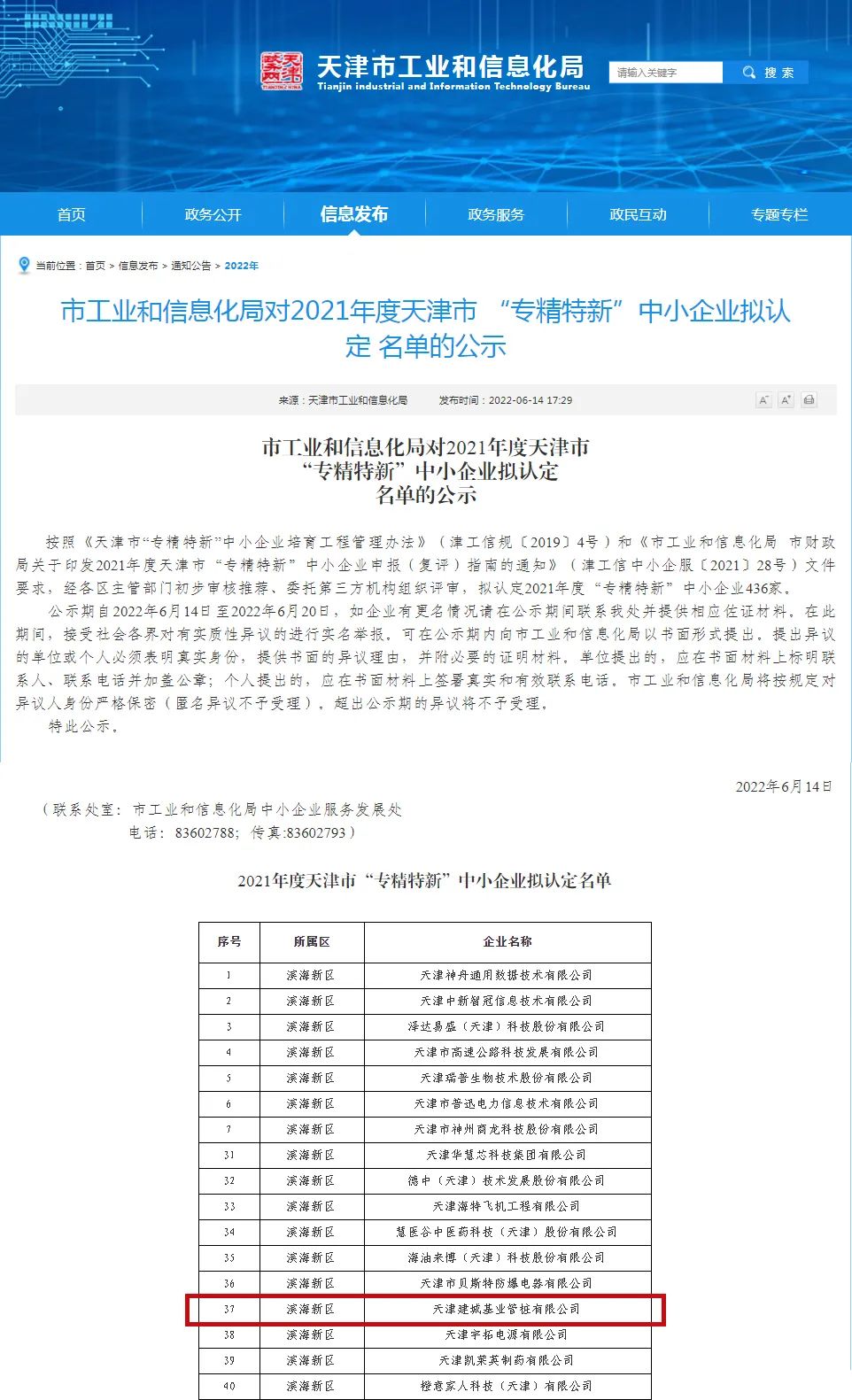 2021年4月市工业和信息化局开展专精特新中小企业认证申报审批工作,建城管桩公司凭借领先的产品与技术、高质量的企业创新能力、精细化的管理水平,经各区工业和信息化主管部门审核推荐、委托第三方机构复审、社会公示等程序,于近日成功获批天津市专精特新中小企业认证。